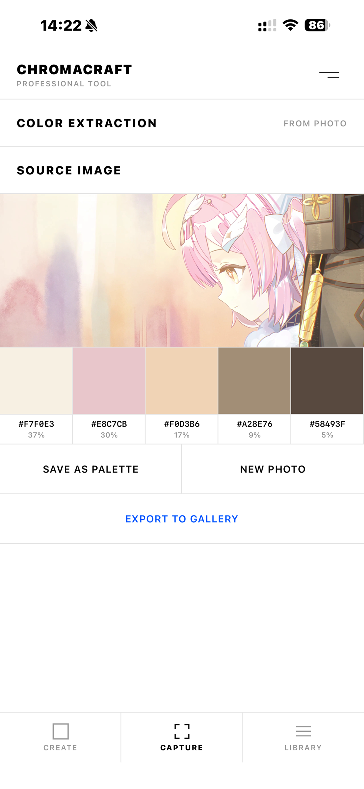 Extract dominant colors from any photo using K-Means++ initialization with CIEDE2000 perceptual distance.